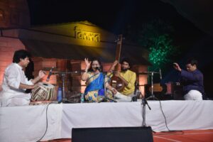 Pravin Godkhindi was accompanied by Shubh Maharaj on Tabla and by his son Shadaj Godkhindi on flute. His first performance is Raga Bhoopali. Followed by, Rupak and teen taal. His jugalbandi was in the form of sawar samvad.