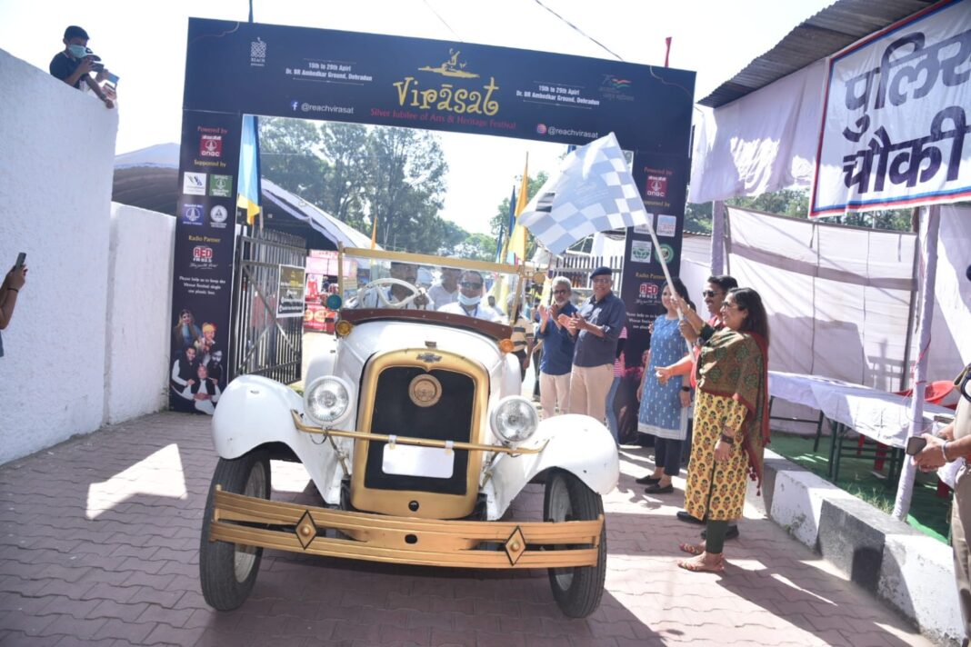 The 10th day of Virasat started with The Vintage And Classic Car And Bike Rally held in the B.R. Ambedkar Stadium, Kaulagarh Road. The route began from B.R. Ambedkar Stadium, going through Garhi Cantt, Pacific hills, Dela Ram Chowk, Clocktower and circling back to the starting point. The Chief Guest, DGP Ashok Kumar of Uttarakhand police, conducted the flag off. A few known faces like Ravinder Singh, Dr S. Farooq, and Vijay Aggarwal graced the event. Mr Ravinder Singh showcased eleven scooters, including models from Vespa and Lambretta; Kunal Arora brought in a Jawa Twin, Noor Mohammad displayed a World War 2 BSA, while Dr Farooq brought in six cars (Chevrolet, Willys, Nissan Jonga, Standard, Ford and Austin). The oldest model was a “Chevrolet”, dating back to 1926, presented by Dr S. Farooq.